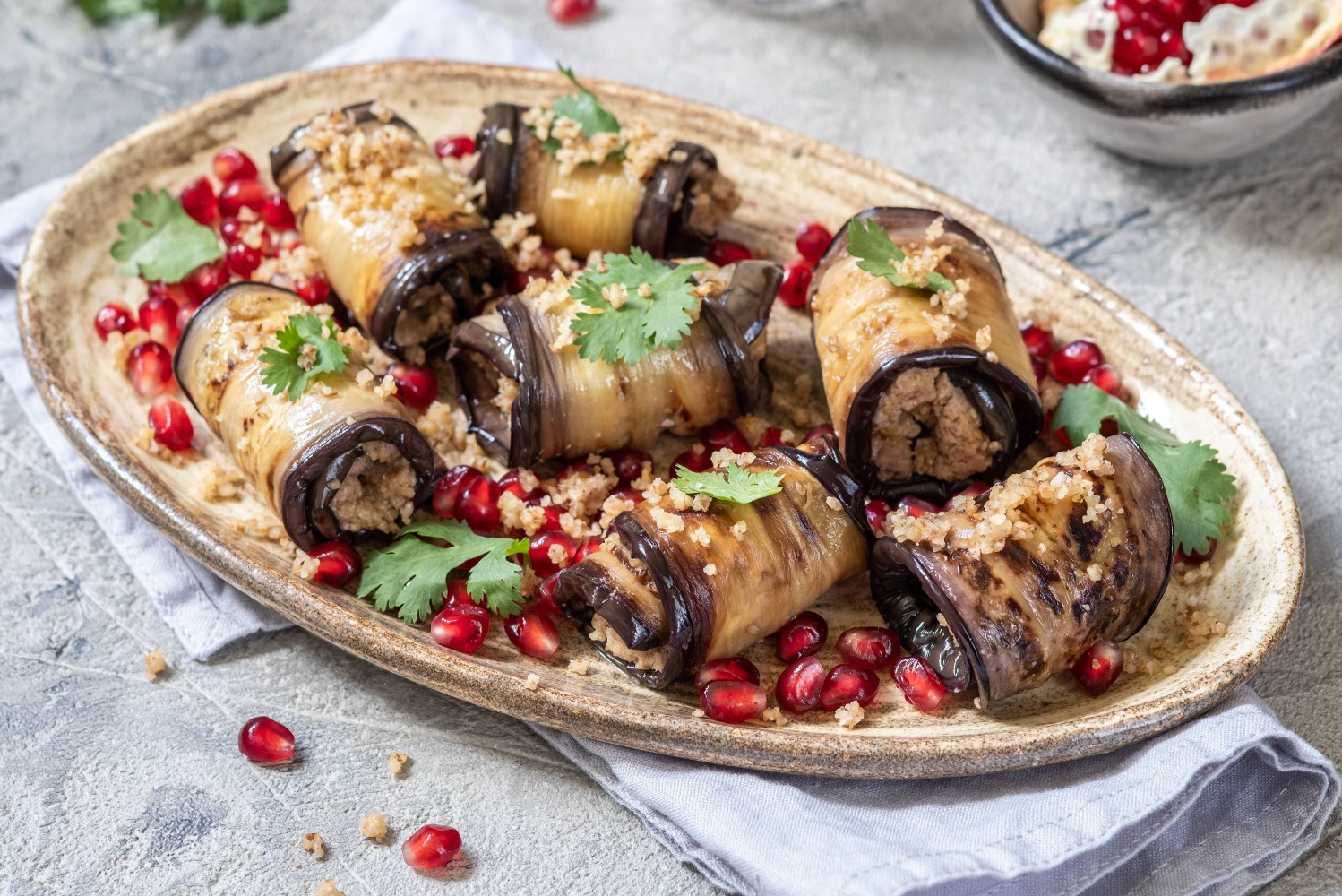 Сочные, обжаренные в масле тонко нарезанные кусочки баклажана, сдобренные нежным соусом из перетертых орехов с чесноком – коронное украшение грузинского стола.
